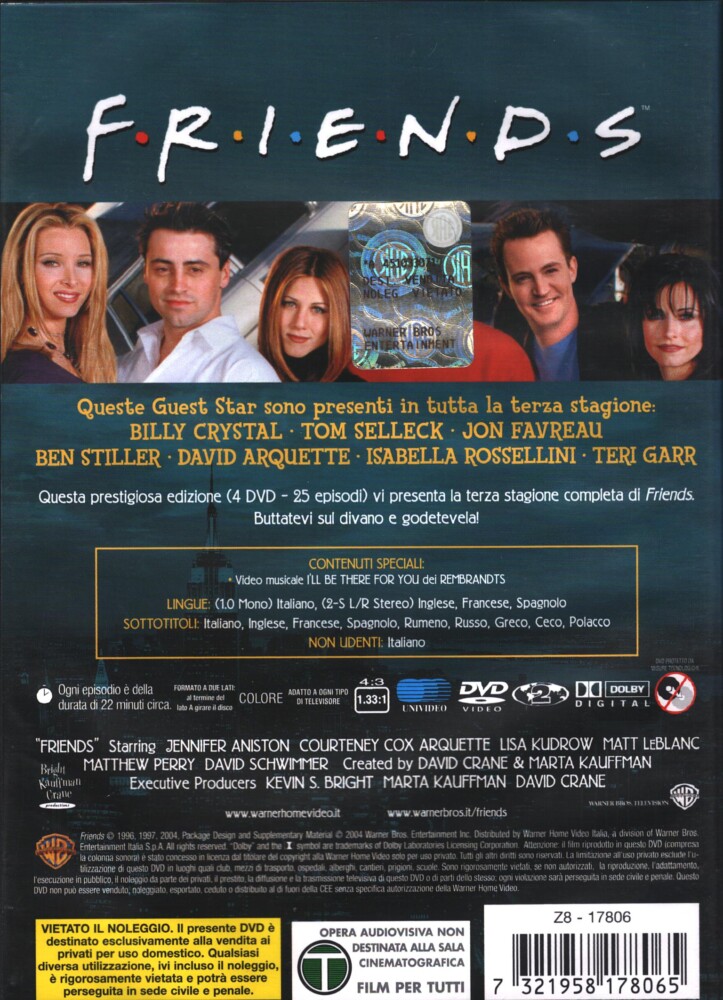 Friends Terza Stagione 3 Completa Box con n. 4 DVD in Italiano