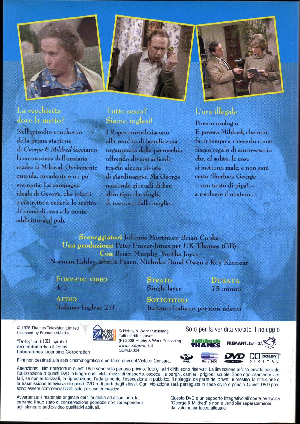 | Titolo: | George e Mildred volume 4. Stagione 2, Episodi 1-2. Stagione 1, Episodio 10. DVD in Italiano. Versione da edicola |