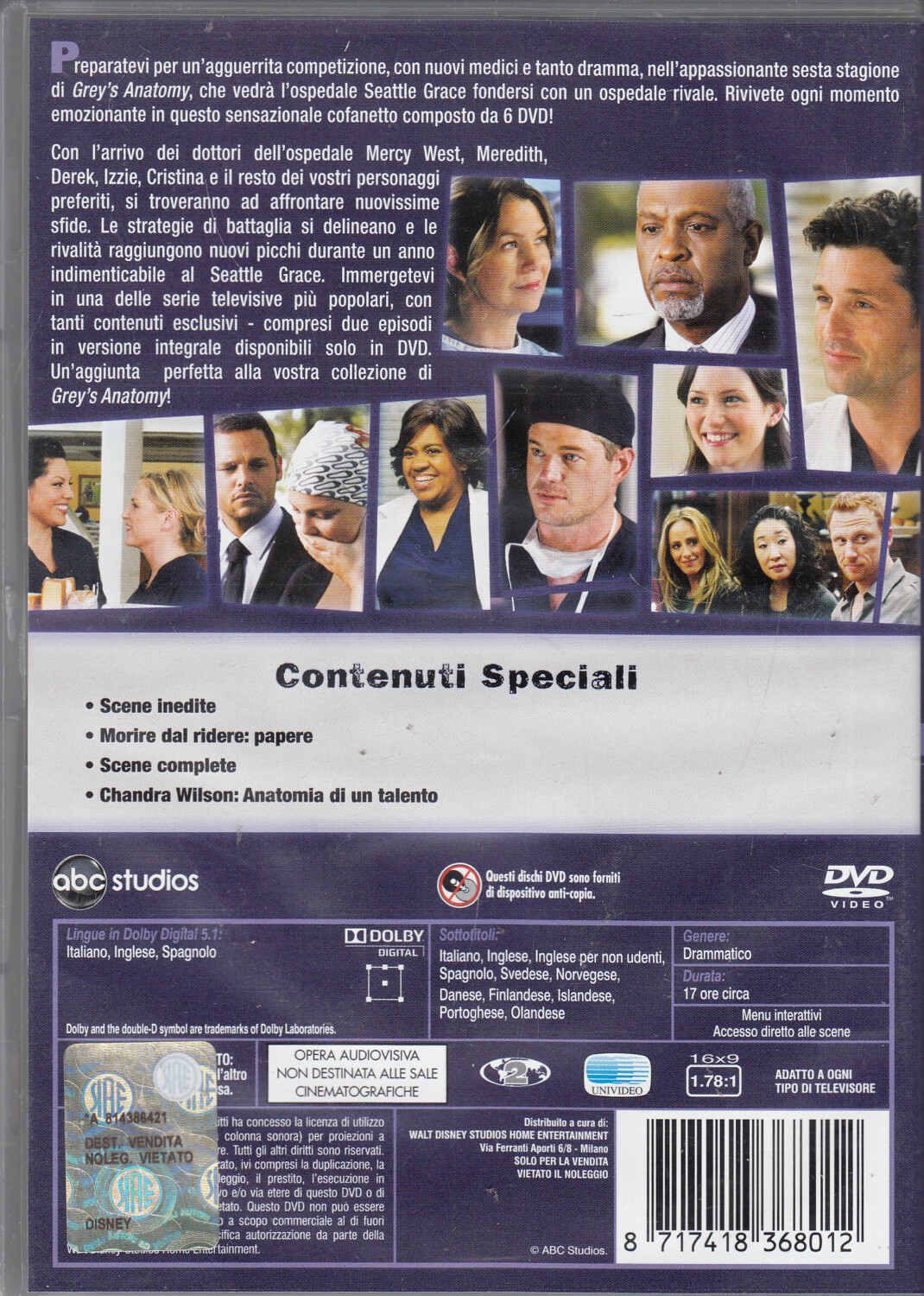| Titolo: | Grey’s Anatomy – Stagione 6 Completa (Episodi 1-24) (Box con 6) DVD in Italiano |