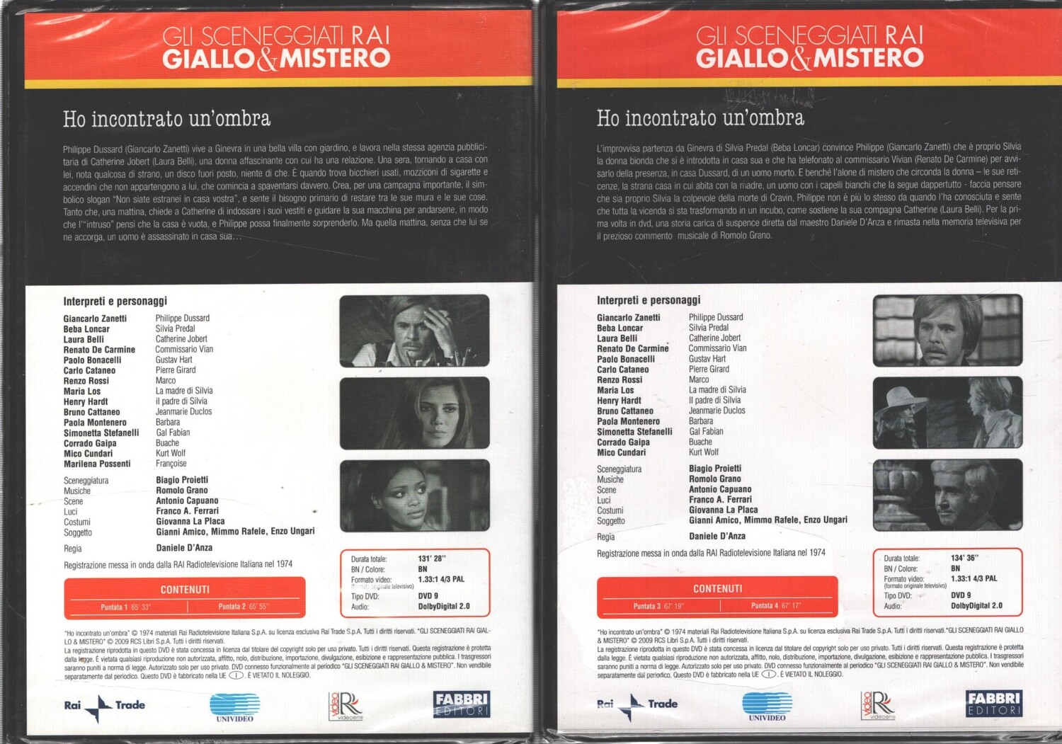 | Titolo: | Ho incontrato un’ombra – Miniserie TV Completa DVD RAI (2 DVD) (Episodi 1-4) Sceneggiati Rai Giallo & Mistero – Versione da edicola – DVD in Italiano |