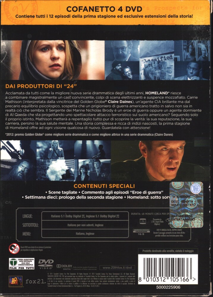 | Titolo: | Homeland Caccia alla Spia – Stagione 1 Completa (Episodi 1-13) (4 DVD) con Cofanetto – DVD in Italiano |