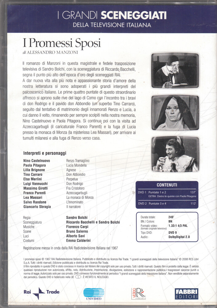 | Titolo: | I Promessi Sposi. Miniserie TV. (Episodi 1-4) con n. 2 DVD in Italiano. I grandi Sceneggiati Rai. Versione da edicola |