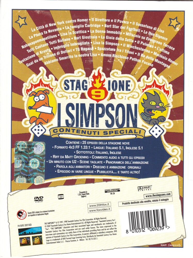 | Titolo: | I Simpson – Stagione 9 Completa (Episodi 1-25) (4 DVD) con Cofanetto da Collezione – DVD in Italiano |
