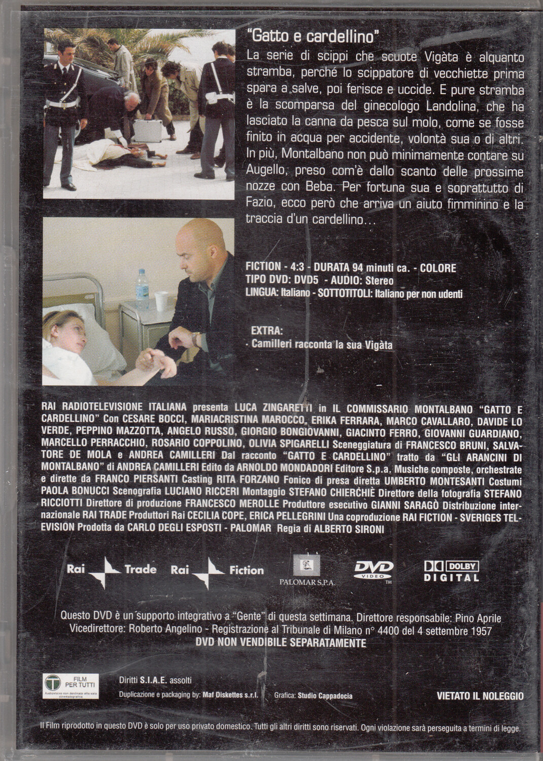 | Descrizione: | Raccolta Completa (Stagioni da 1 a 6 complete) con n. 14 DVD. I titoli inclusi sono: – La pazienza del ragno – Il gioco delle tre carte – Il giro di boa – Par condicio – Il ladro di merendine – La voce del violino – La forma dell’acqua – Il cane di terracotta – La gita a Tindari – Tocco d’artista – Il senso del tatto – Gli arancini di Montalbano – L’odore della notte – Gatto e cardellino |