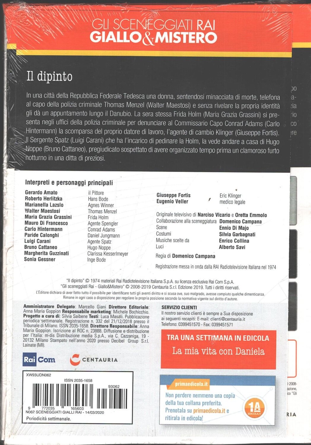 | Titolo: | Il dipinto – Miniserie TV Completa DVD RAI (Episodi 1-2) Sceneggiati Rai Giallo & Mistero – Versione da edicola DVD in Italiano |