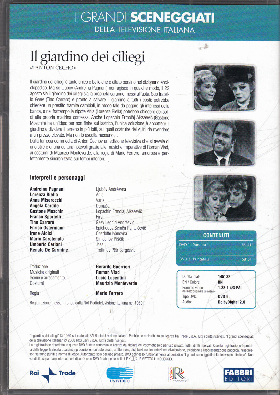 | Titolo: | Il giardino dei ciliegi – Miniserie RAI Completa (Episodi 1-2) (2 DVD) I grandi Sceneggiati Rai – Versione da edicola – DVD in Italiano |