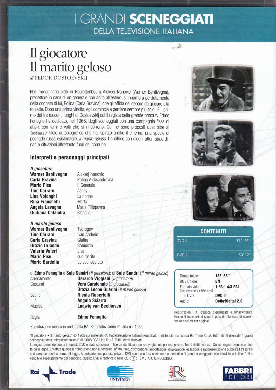 | Titolo: | Il Giocatore – Il Marito Geloso. Miniserie TV Complete con n. 2 DVD in Italiano. Grandi Sceneggiati Rai. Versione edicola |