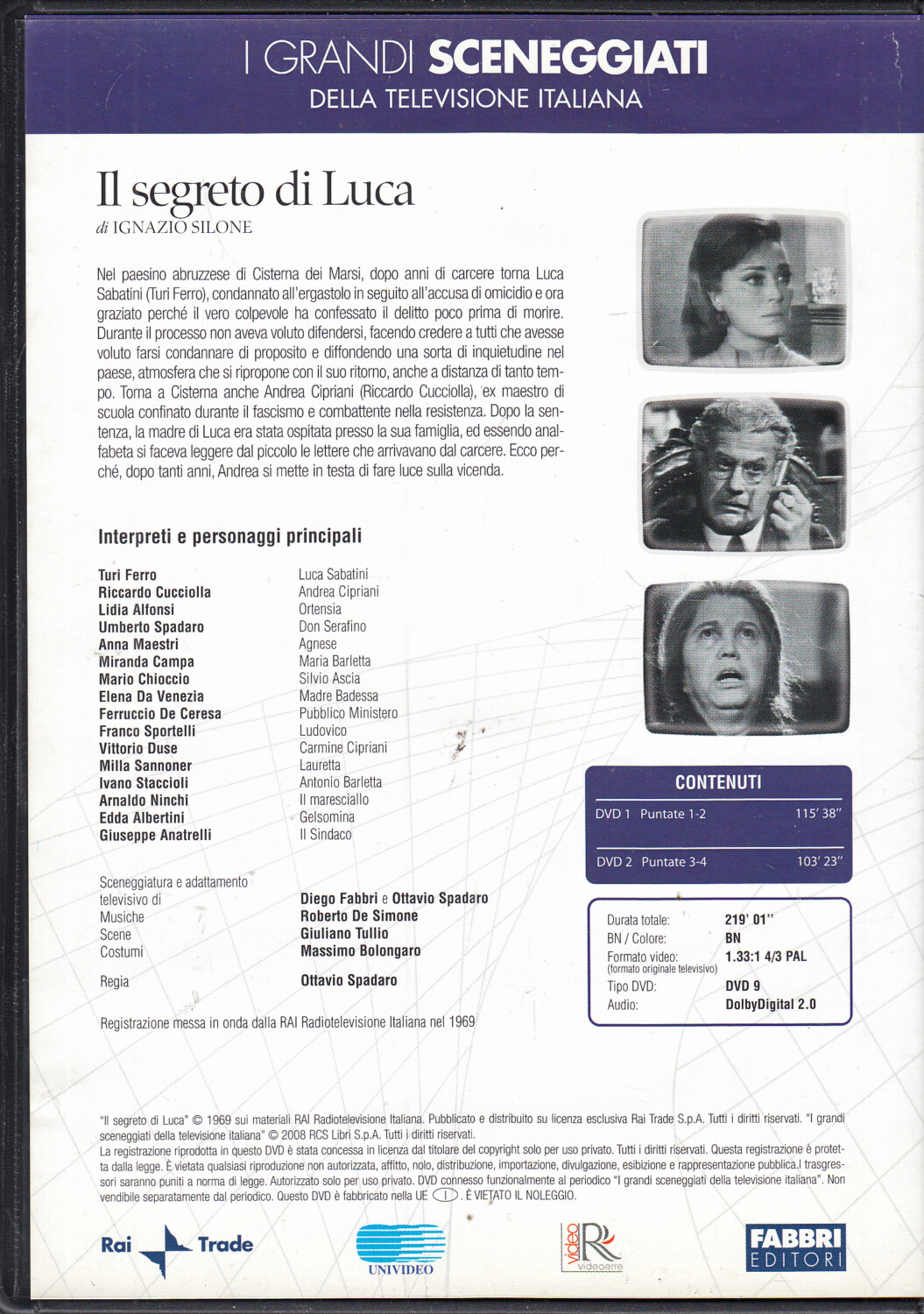 | Titolo: | Il segreto di Luca – Miniserie TV Completa RAI (Episodi 1-4) (2 DVD) I Grandi Sceneggiati Rai – Versione da edicola – DVD in Italiano |