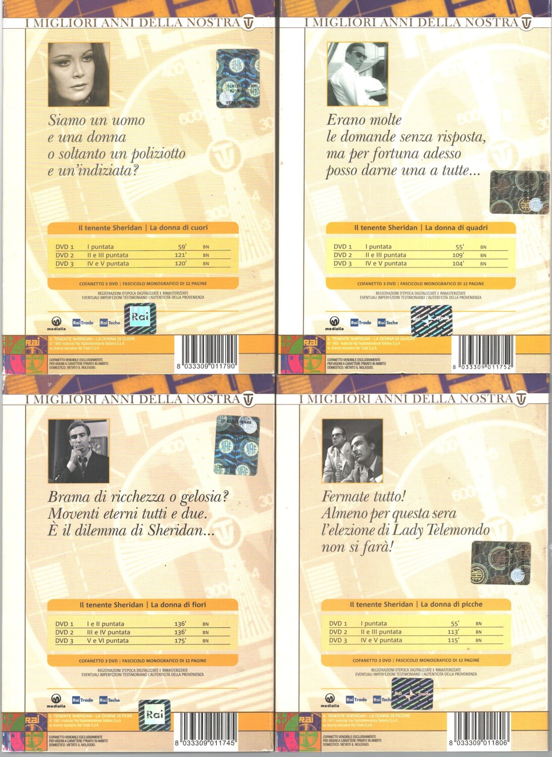 | Titolo: | Il Tenente Sheridan: La Donna di Cuori, Quadri, Fiori, Picche. Miniserier Completa (Episodi 21) (12 DVD) con Slipcase. I Migliori anni della TV. DVD in Italiano |