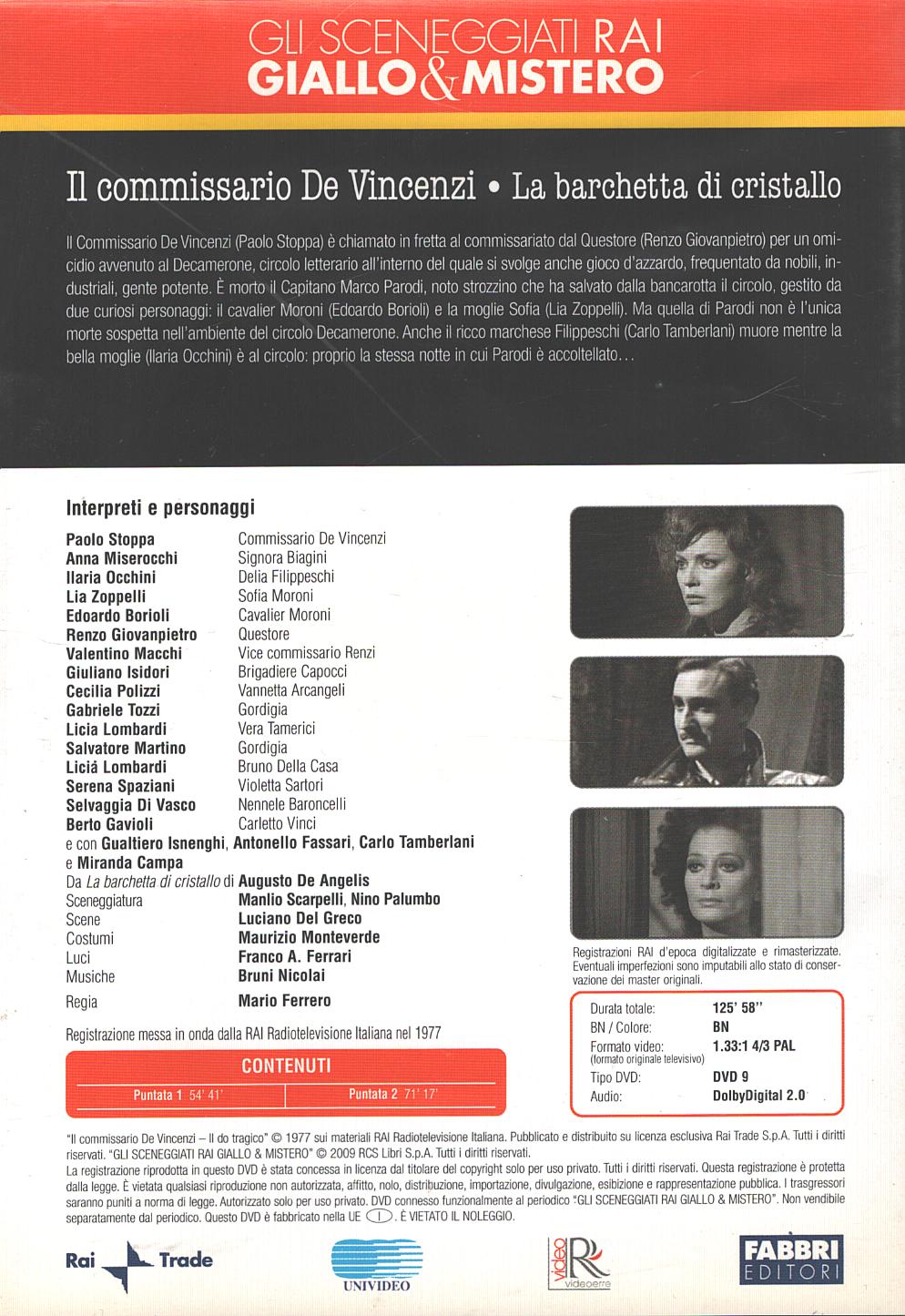| Titolo: | La barchetta di cristallo – Commissario De Vincenzi – DVD Miniserie Completa RAI (Episodi 1-2) Sceneggiati RAI Giallo & Mistero – Versione da edicola – DVD in Italiano |