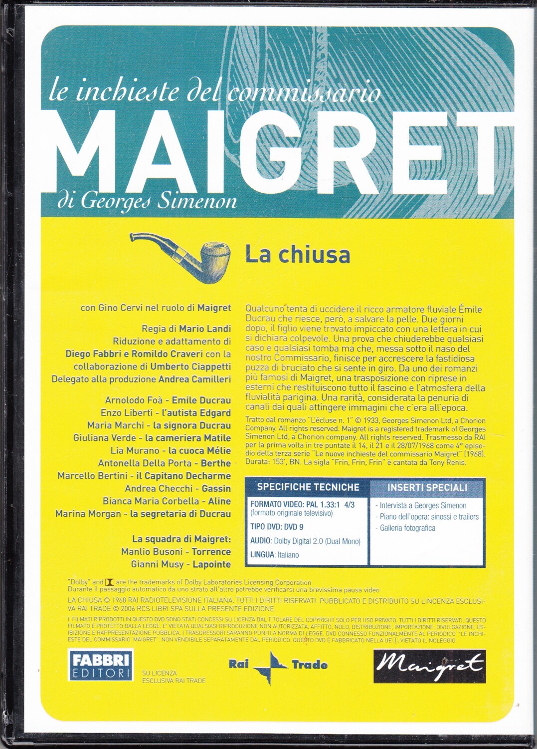 | Titolo: | La Chiusa – DVD Le Inchieste del Commissario Maigret (Gino Cervi) – Versione da edicola – DVD in Italiano. |