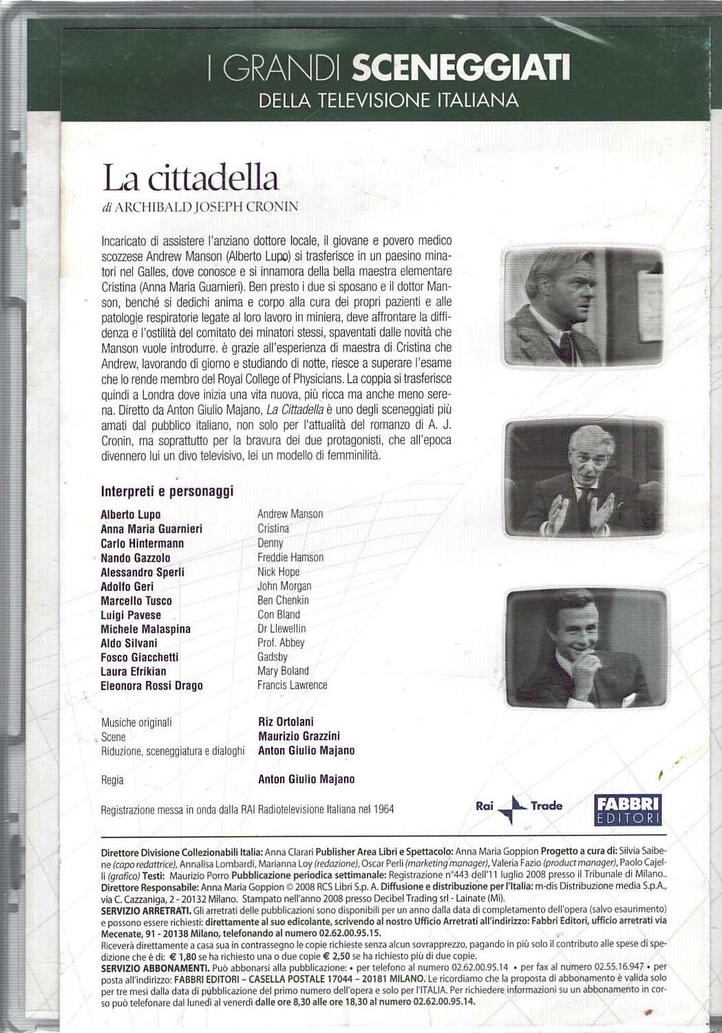 | Titolo: | La cittadella – Parte Prima DVD RAI (Episodi 1-4) (2 DVD) Grandi Sceneggiati Rai – Versione da edicola – DVD in Italiano |