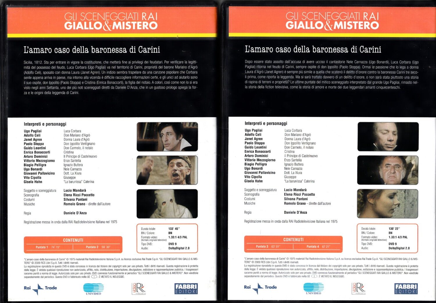 | Titolo: | L’amaro caso della baronessa di Carini – Miniserie TV Completa DVD RAI (Episodi 1-4) (2 DVD) Sceneggiati Rai Giallo & Mistero – Versione da edicola DVD in Italiano |