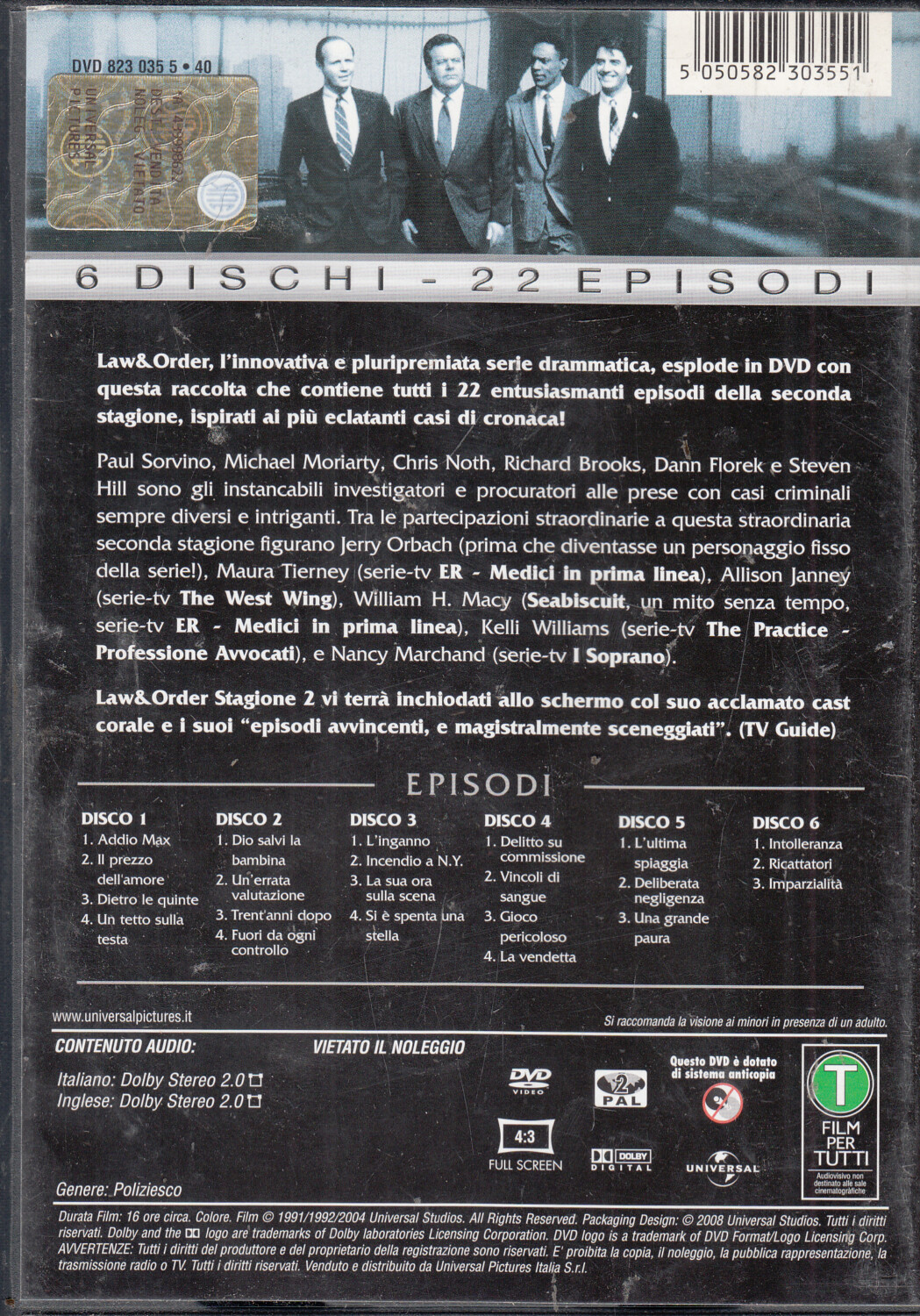 | Titolo: | Law & Order. I due volti della giustizia. Stagione 2 (Episodi 1-22) (6 DVD). DVD in Italiano |
