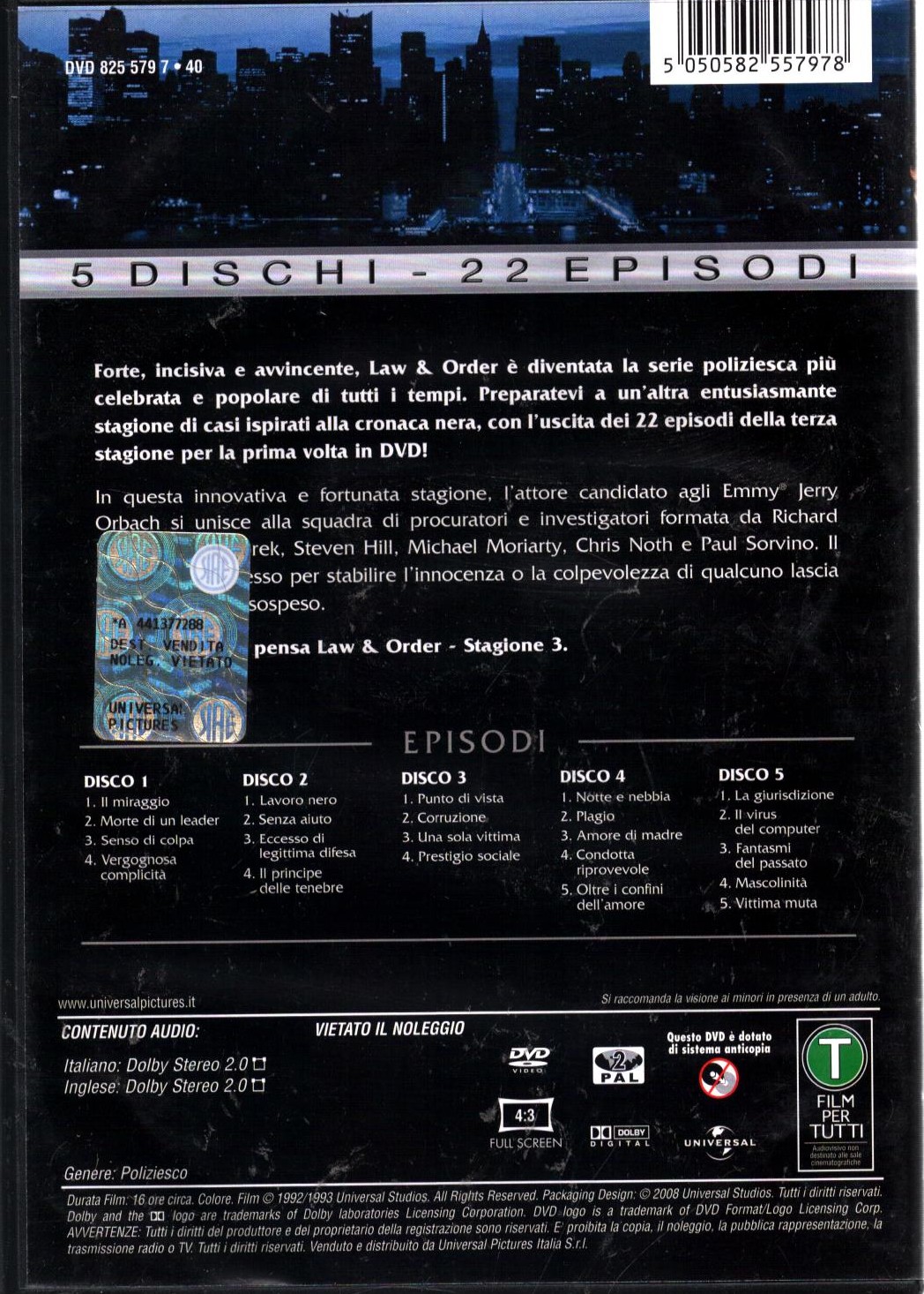 Law & order – I due volti della giustizia Terza Stagione 3 con 5 DVD in Italiano