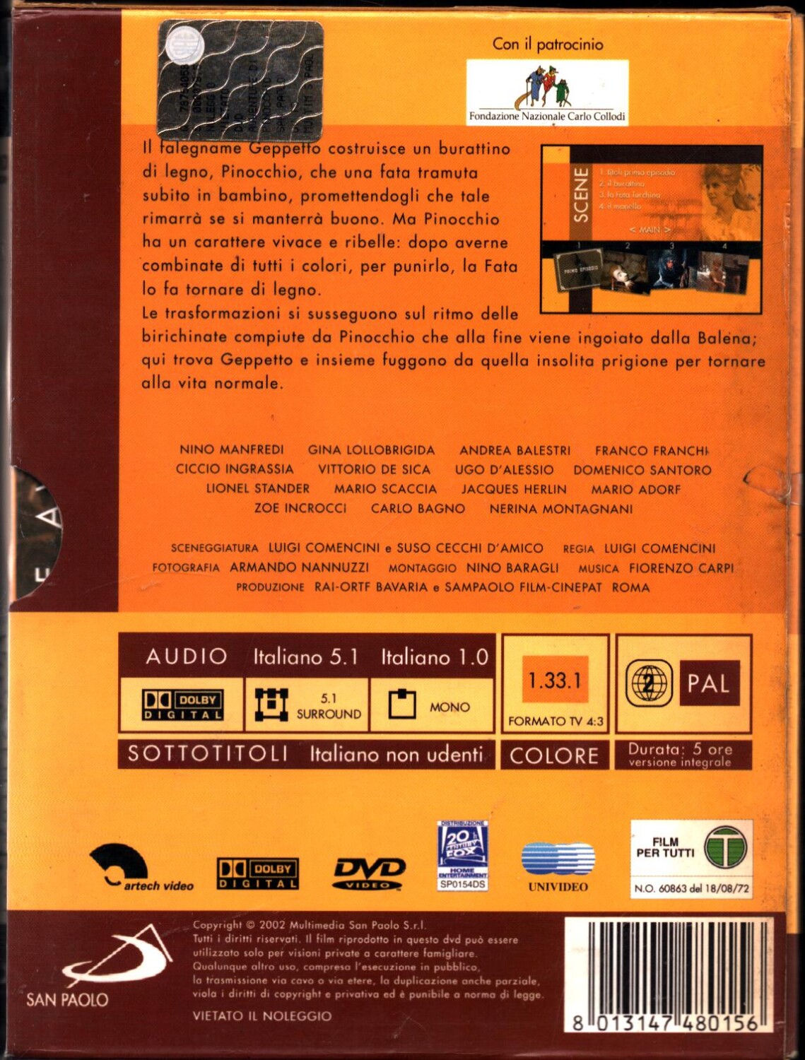 | Titolo: | Le avventure di Pinocchio – Miniserie Completa (Episodi 1-6) (2 DVD) Edizione Speciale – con Cofanetto – DVD in Italiano |