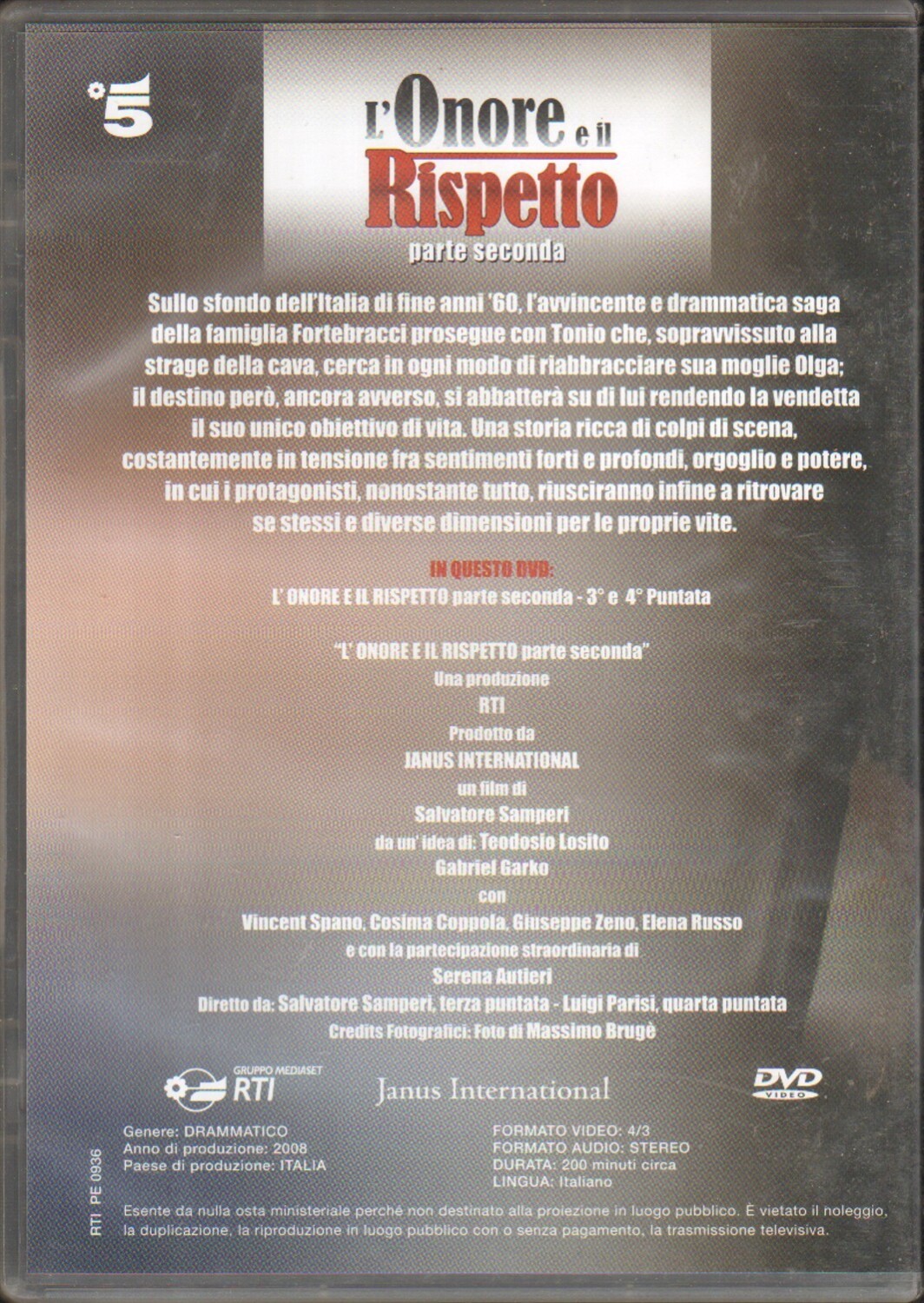 | Titolo: | L’onore e il rispetto Parte Seconda – Stagione 2 Completa (3 DVD) (Episodi 1-6) con Cofanetto – Versione da edicola – DVD in Italiano |