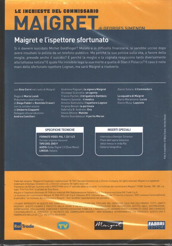 | Titolo: | Maigret e l’Ispettore sfortunato (Gino Cervi) – DVD Le Inchieste del Commissario Maigret – Versione da edicola – DVD in Italiano |