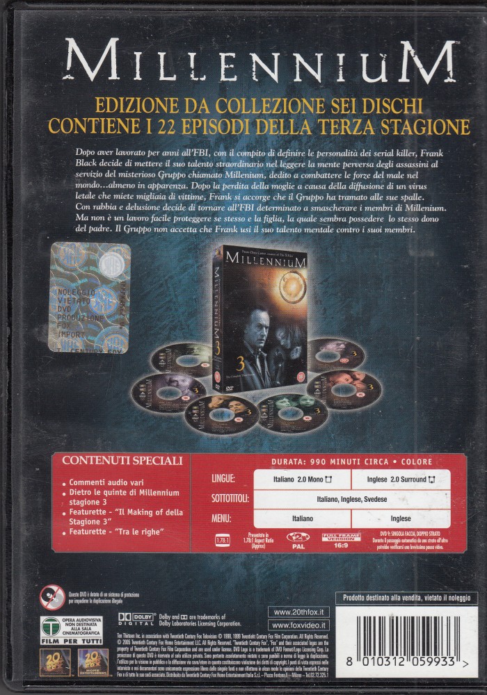 MILLENNIUM Stagione 3 Completa n. 6 DVD Ita Edizione da Collezione