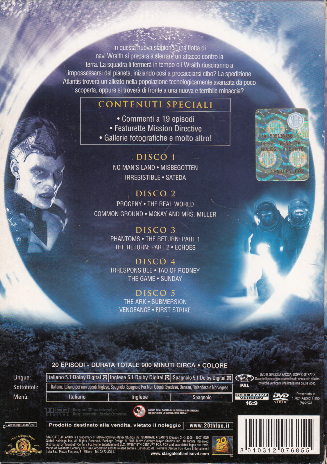 | Titolo: | Stargate Atlantis. Terza Stagione 3 Completa (Episodi 1-20) con n. 5 DVD in Italiano con Cofanetto |