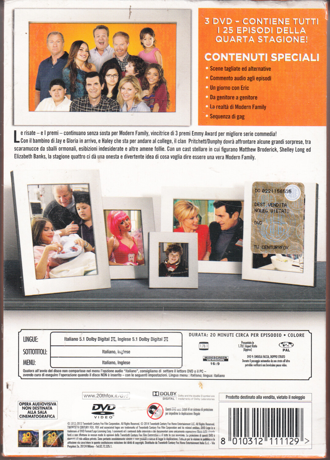 Modern Family. Quarta Stagione 4 Completa. Episodi 1-25 con n. 3 DVD in Italiano con Cofanetto