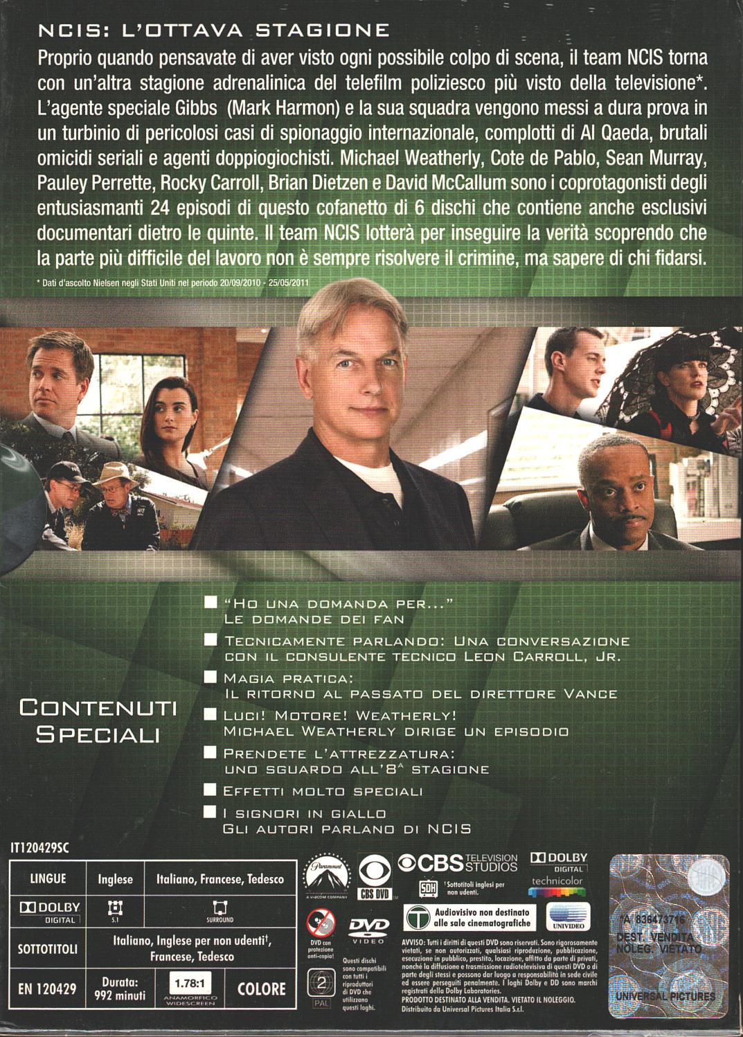 | Titolo: | NCIS Naval Criminal Investingative Service – Stagione 8 Completa (DVD 6) (Episodi 1-24) con Cofanetto – DVD in Italiano |