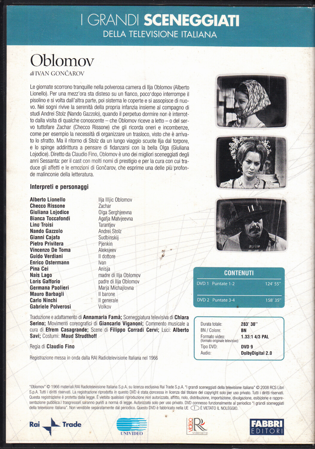 | Titolo: | Oblomov – Miniserie Completa DVD RAI – (Episodi 1-4) (2 DVD) Versione da edicola – Grandi Sceneggiati Rai – DVD in Italiano |