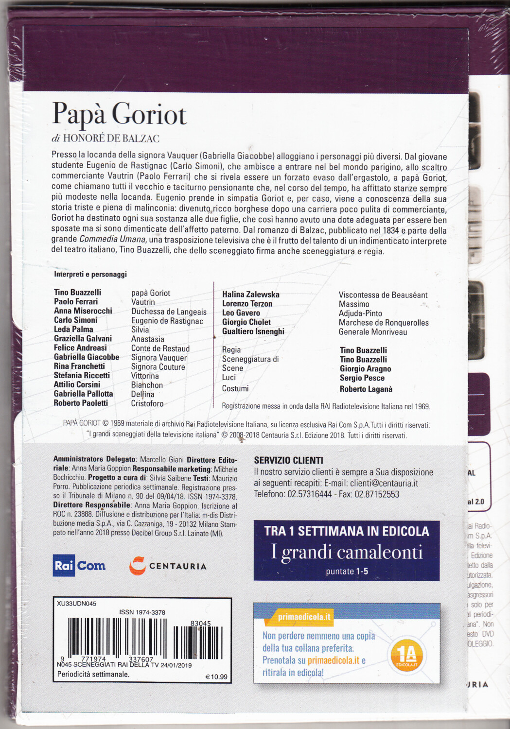| Titolo: | Papa’ Goriot. Miniserie TV Completa Episodi 1-2. DVD in Italiano. I grandi Sceneggiati Rai. Versione da edicola |