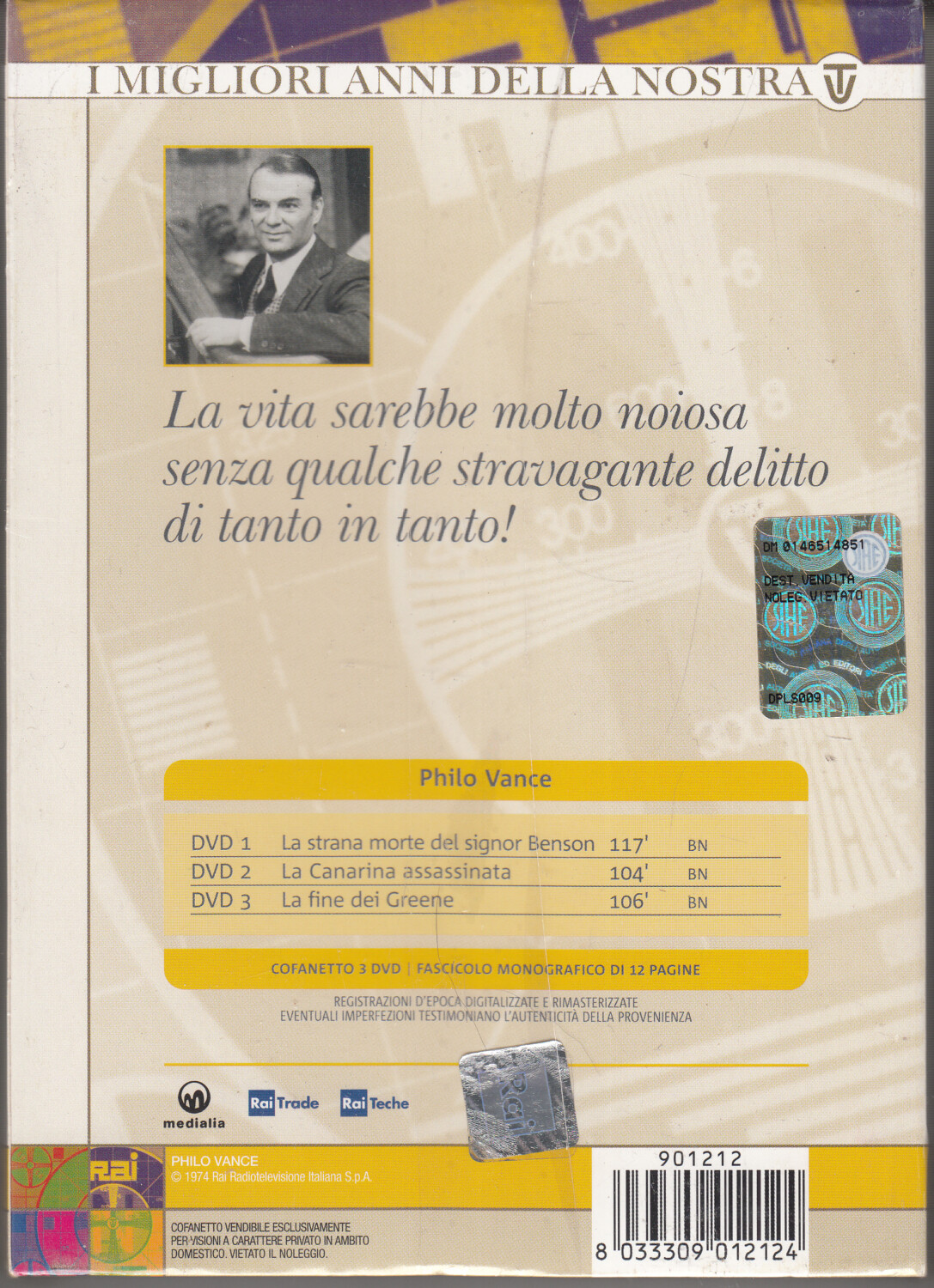 Philo Vance – Miniserie Completa RAI (Episodi 1-3) (3 DVD) – I Migliori Anni della nostra TV – DVD in Italiano