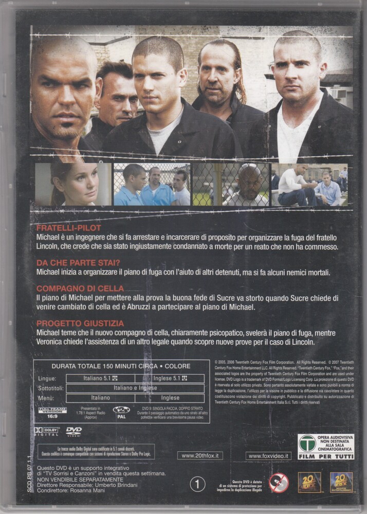PRISON BREAK Prima Stagione 1 Completa n. 7 DVD. Editoriale
