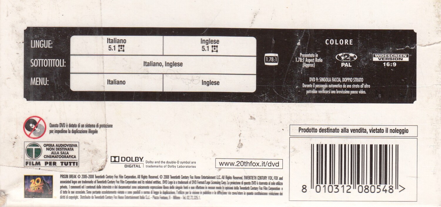 | Titolo: | Prison Break Stagione 1-3 Complete. Cofanetto con n. 16 DVD in Italiano |