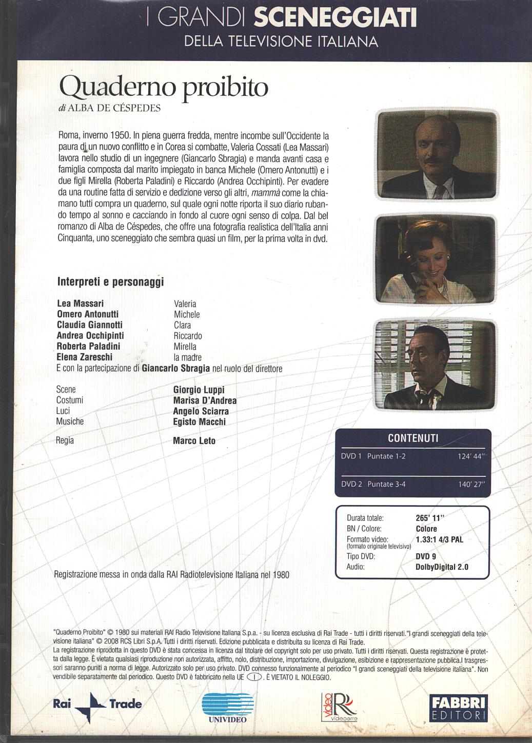 | Titolo: | Quaderno Proibito – Miniserie Completa DVD RAI (2 DVD) (Episodi 1-4) Grandi Sceneggiati Rai – Versione da edicola – DVD in Italiano |