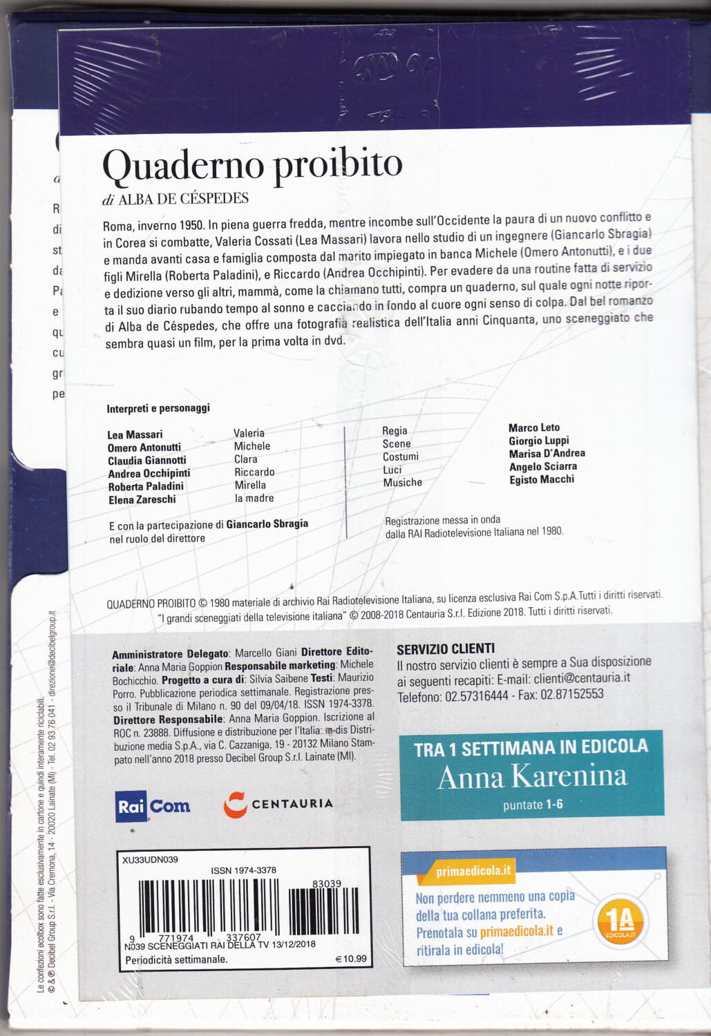 | Titolo: | Quaderno Proibito. Miniserie TV Completa Episodi 1-4 con n. 2 DVD in Italiano. I grandi Sceneggiati Rai. Versione da edicola |