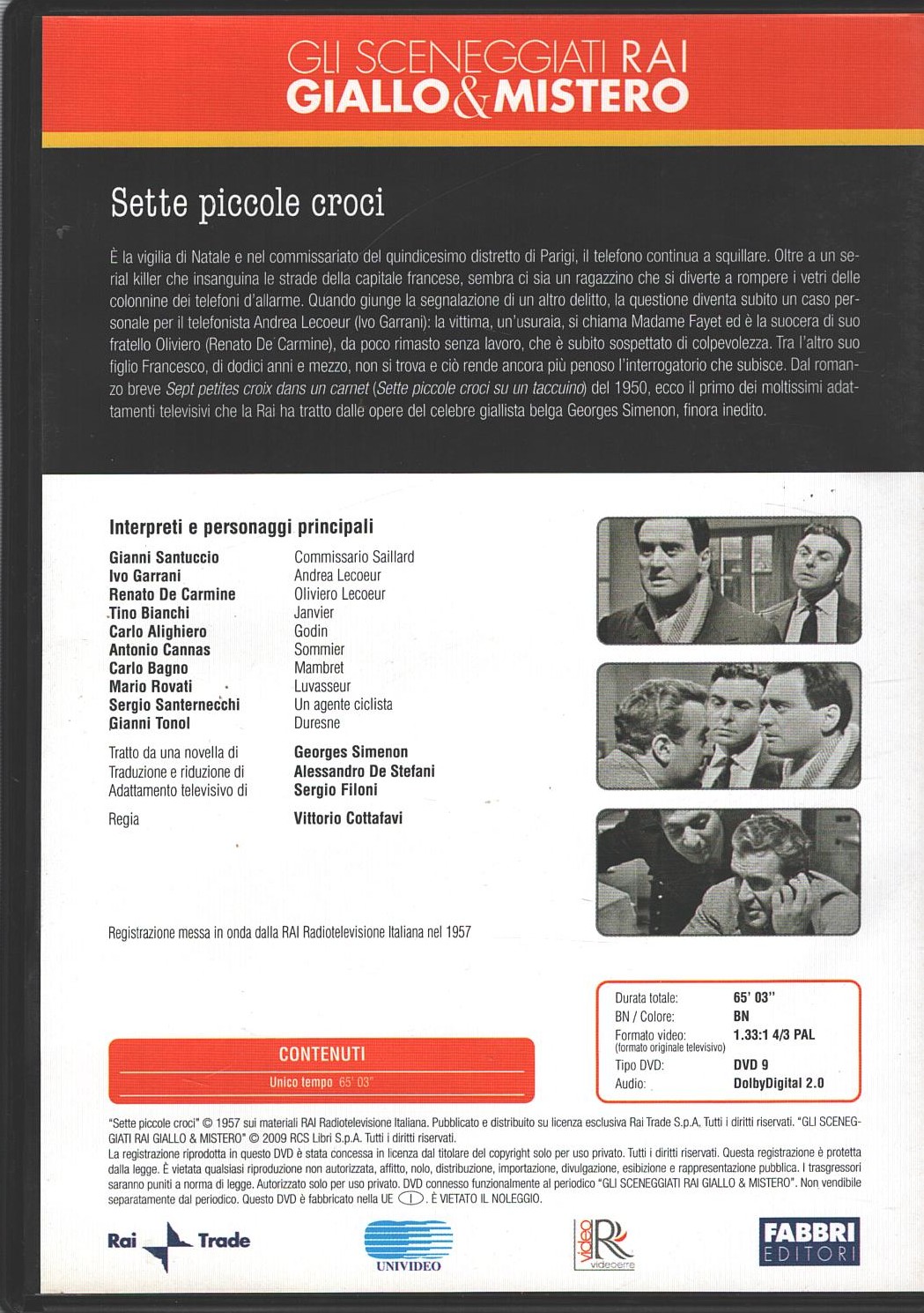 | Titolo: | Sette piccole croci – Miniserie DVD RAI Completa (Episodi unico) Sceneggiati Rai Giallo & Mistero – Versione da edicola – DVD in Italiano |