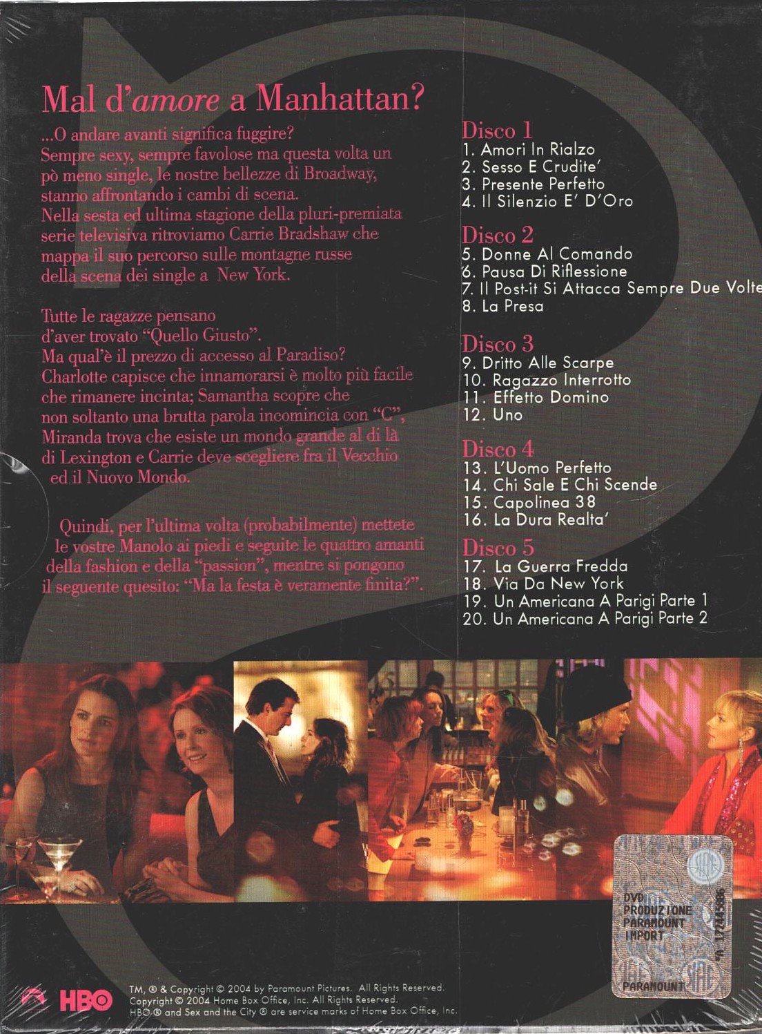 | Titolo: | (NA) Sex and the city – Stagione Finale – Stagione 6 Completa (5 DVD) (Episodi 1-20) con Cofanetto – DVD in Italiano |