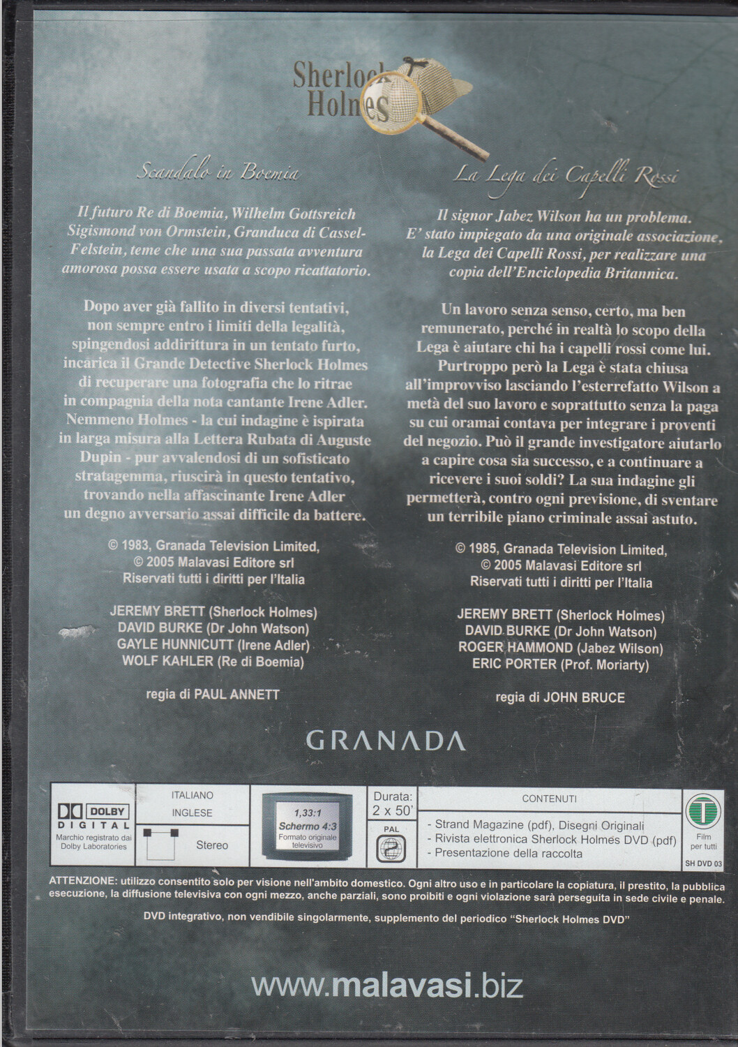 | Titolo: | Sherlock Holmes Scandalo in Boemia – La Lega dei Capelli Rossi – DVD in Italiano. Versione da edicola |
