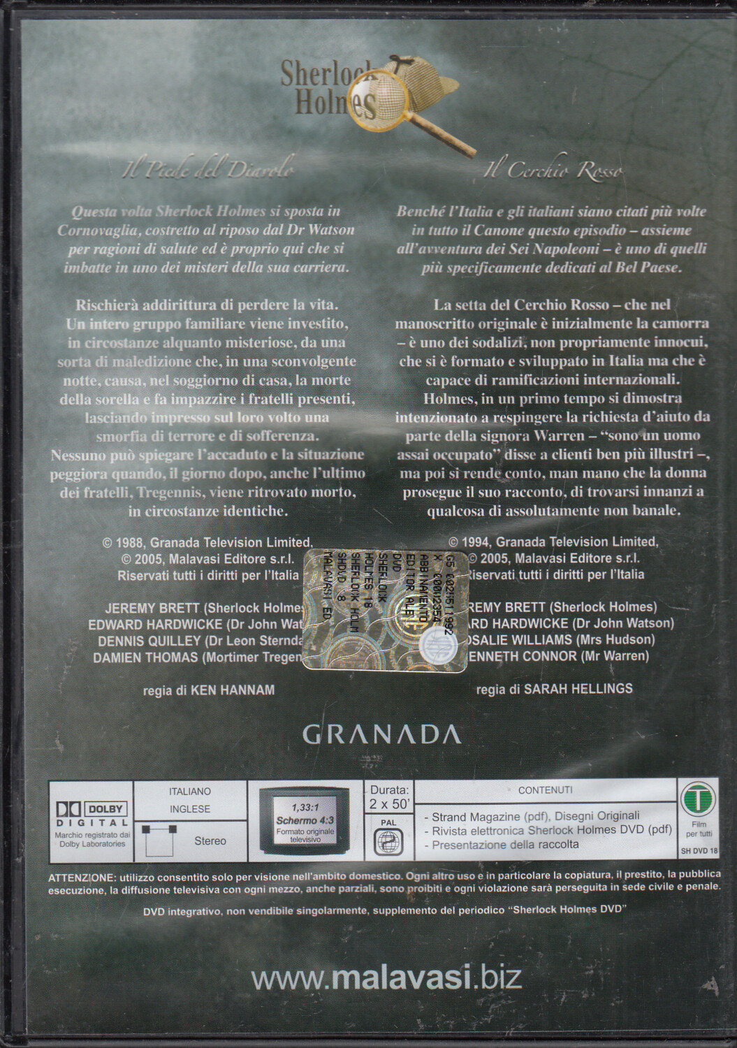 | Titolo: | Sherlock Holmes vol. 18: Il piede del Diavolo – Il cerchio rosso. DVD in Italiano. Versione da edicola |