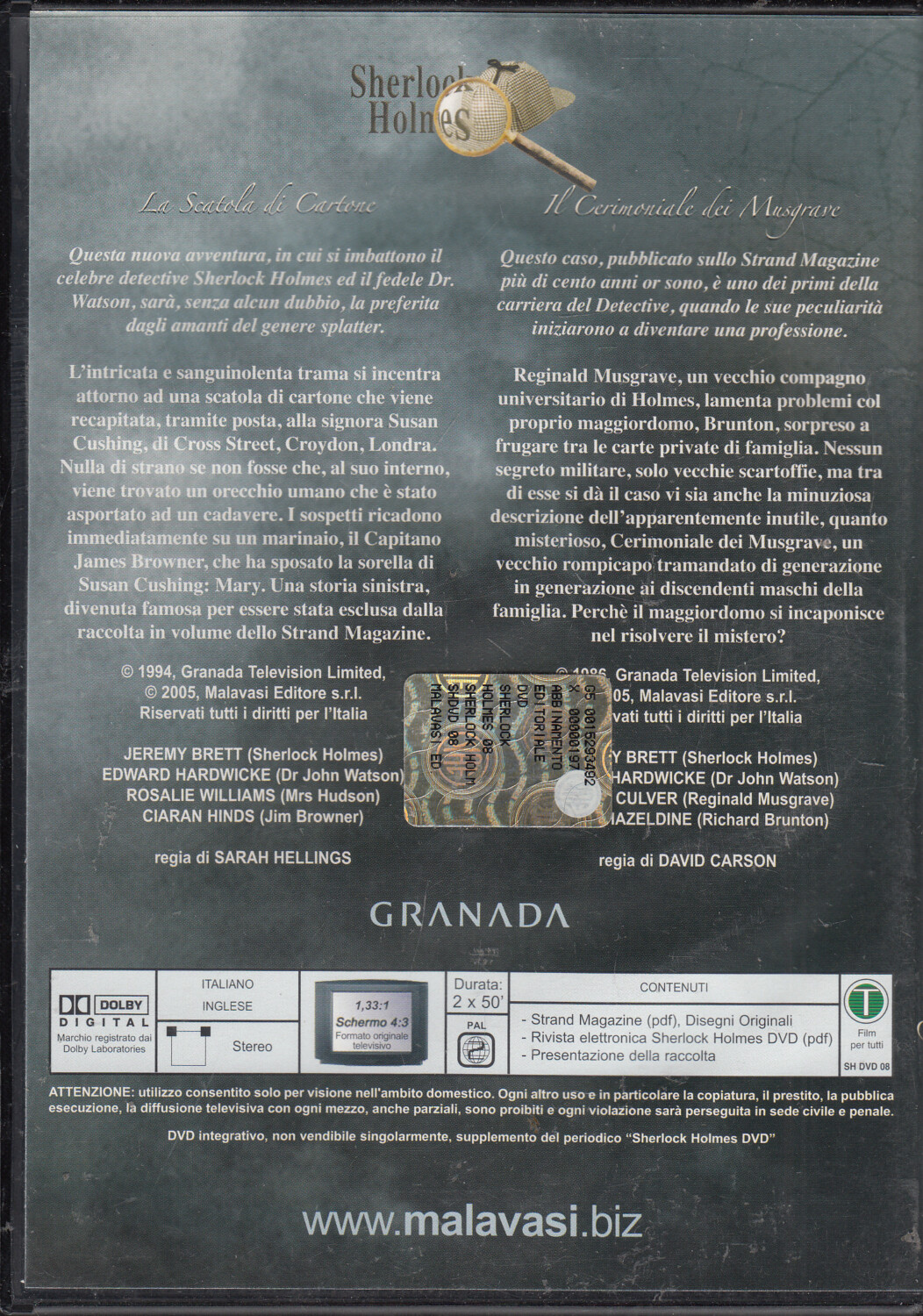 Sherlock Holmes vol. 8: La scatola di cartone – Il cerimoniale dei Musgrave. DVD in Italiano. Versione da edicola