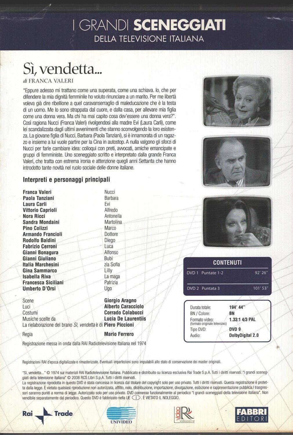 Sì vendetta – Miniserie Completa DVD RAI (2 DVD) (Episodi 1-3) Grandi Sceneggiati Rai – Versione da edicola – DVD in Italiano