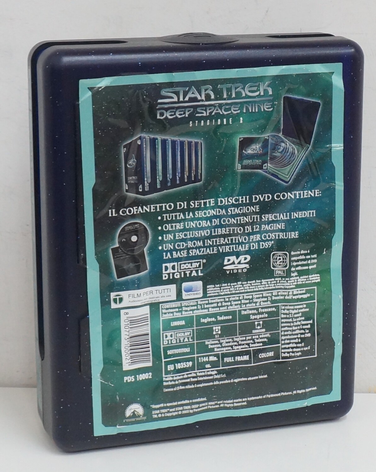 | Dischi: Condizioni Ottime (Presentano qualche leggerissimo graffietto, perfettamente funzionanti) — Custodia: Condizioni Ottime — Libretto presente (foglio cartaceo interno con i dati del DVD). Con cofanetto Capsule Box in plastica rigida. E’ presente il CD-Rom interattivo per costruire la base spaziale virtuale di DS9. |