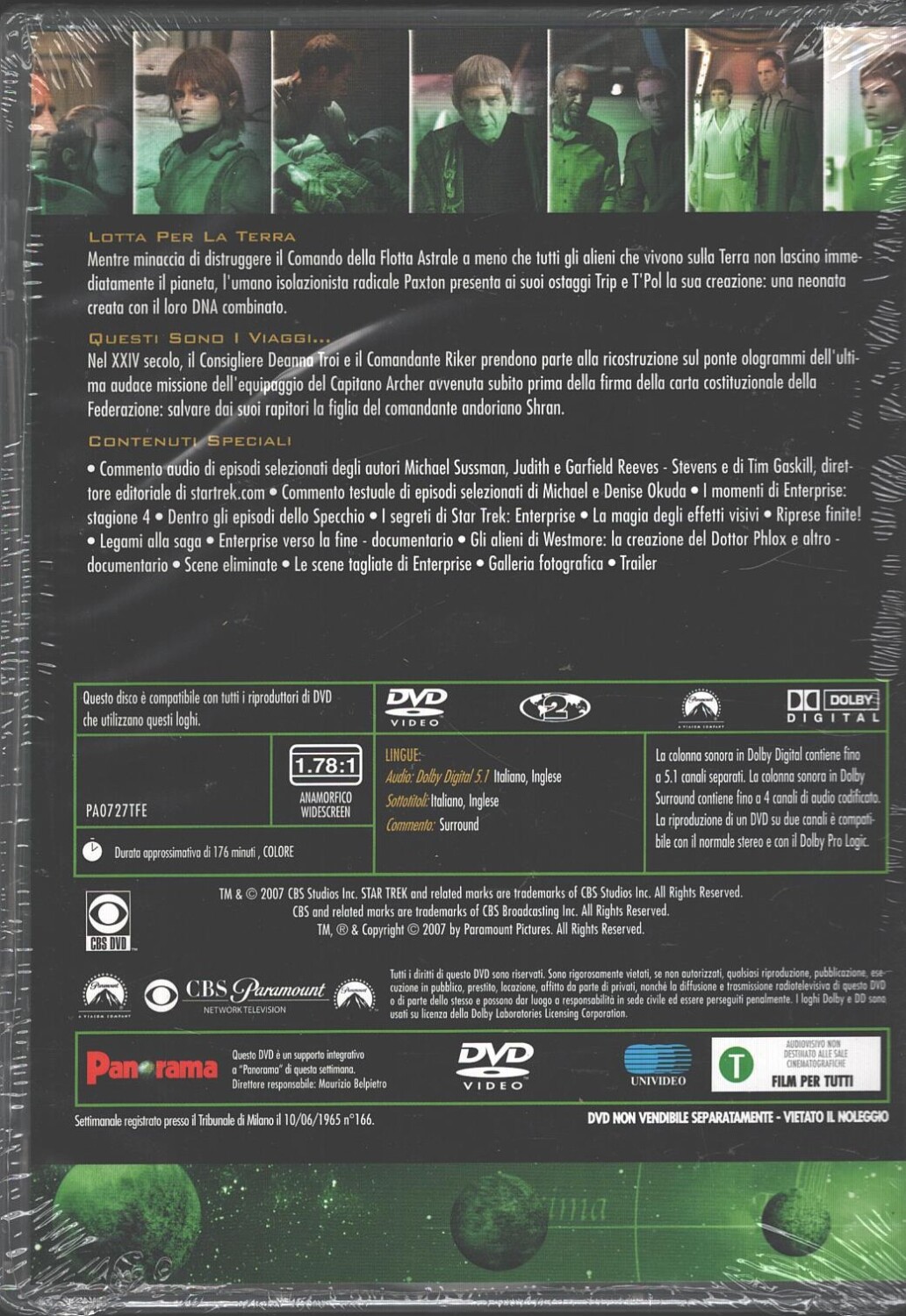 | Titolo: | Star Trek Enterprise – Serie Completa Stagioni 1-4 (Episodi 98) (27 DVD) SENZA Cofanetto – Versione da edicola – DVD in Italiano |