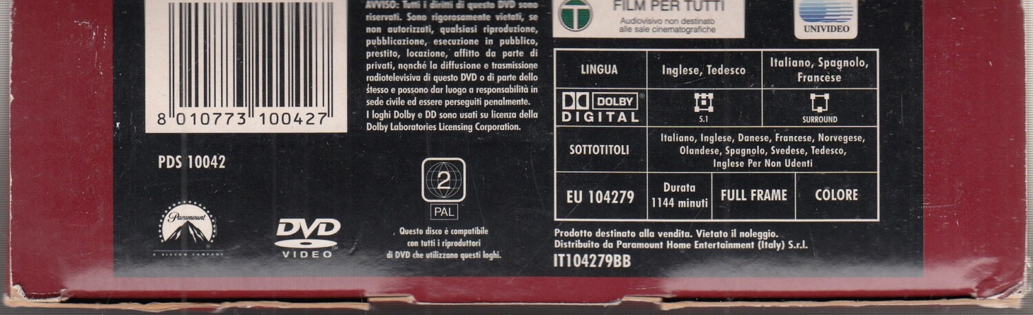 | Sottotitoli: | Italiano, Inglese, Spagnolo, Tedesco, Danese, Norvegese, Olandese, Svedese |
