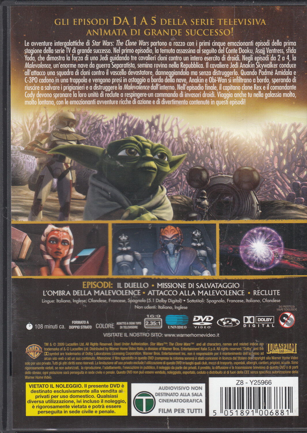 | Titolo: | Star wars. The Clone Wars. Stagione 1 Completa. (Episodi 1-22) (4 DVD) con Cofanetto. DVD in Italiano |