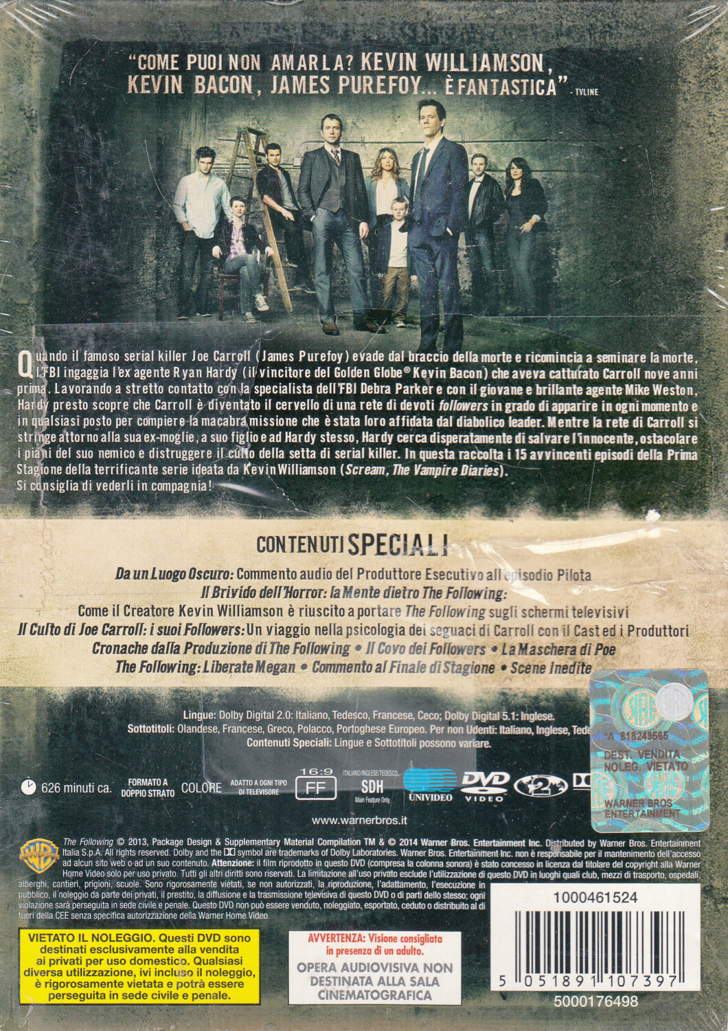 | Titolo: | The following. Prima Stagione 1 Completa. Episodi 1-15 con n. 4 DVD in Italiano |