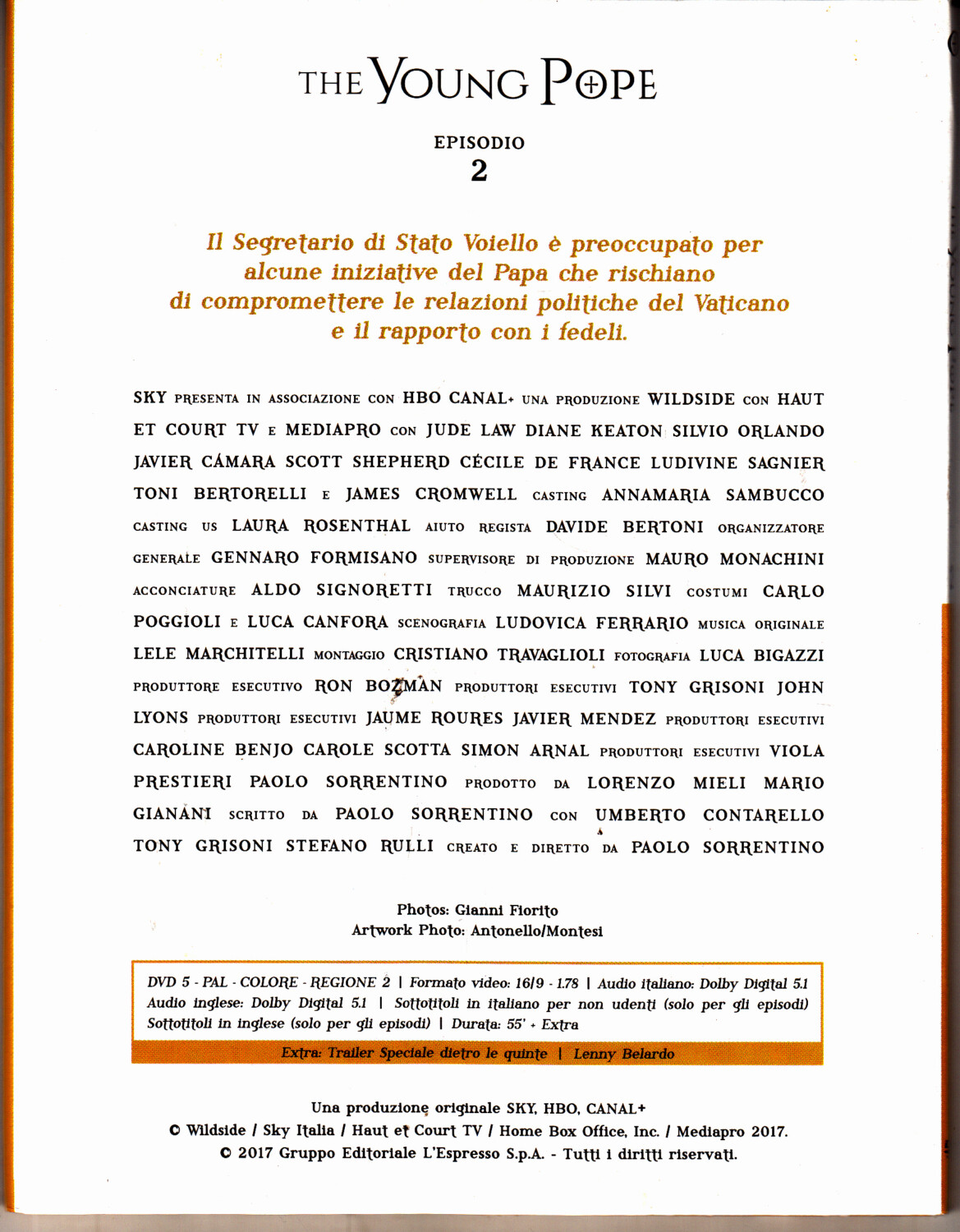 | Titolo: | The Young Pope vol. 2, Episodio 2, Stagione 1. Paolo Sorrentino. DVD in Italiano. Versione da edicola |