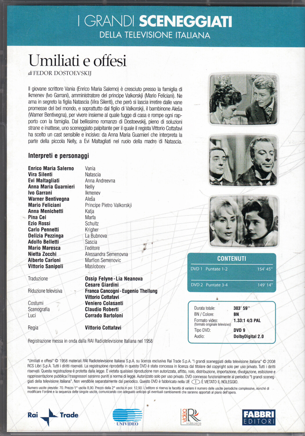 | Titolo: | Umiliati e offesi (Enrico Maria Salerno) Miniserie TV Completa DVD RAI (Episodi 1-4) (2 DVD) I grandi Sceneggiati Rai – Versione da edicola DVD in Italiano |