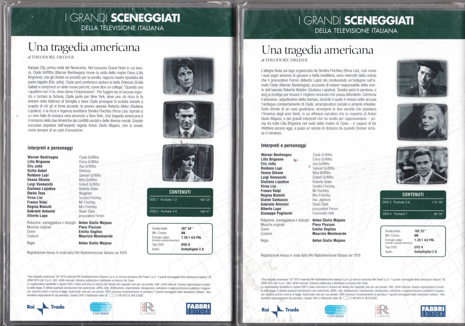 | Titolo: | Una tragedia americana. Miniserie TV Completa (Episodi 1-7) (4 DVD). I Grandi Sceneggiati RAI. Versione da edicola. DVD in Italiano. |