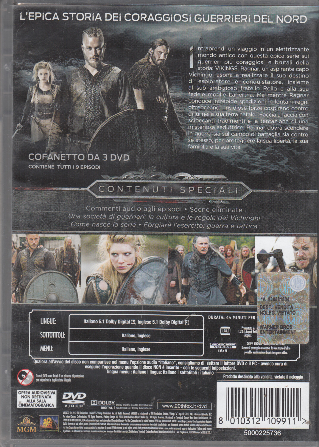 | Titolo: | Vikings. Prima Stagione 1 Completa. Episodi 1-9 con n. 3 DVD in Italiano |