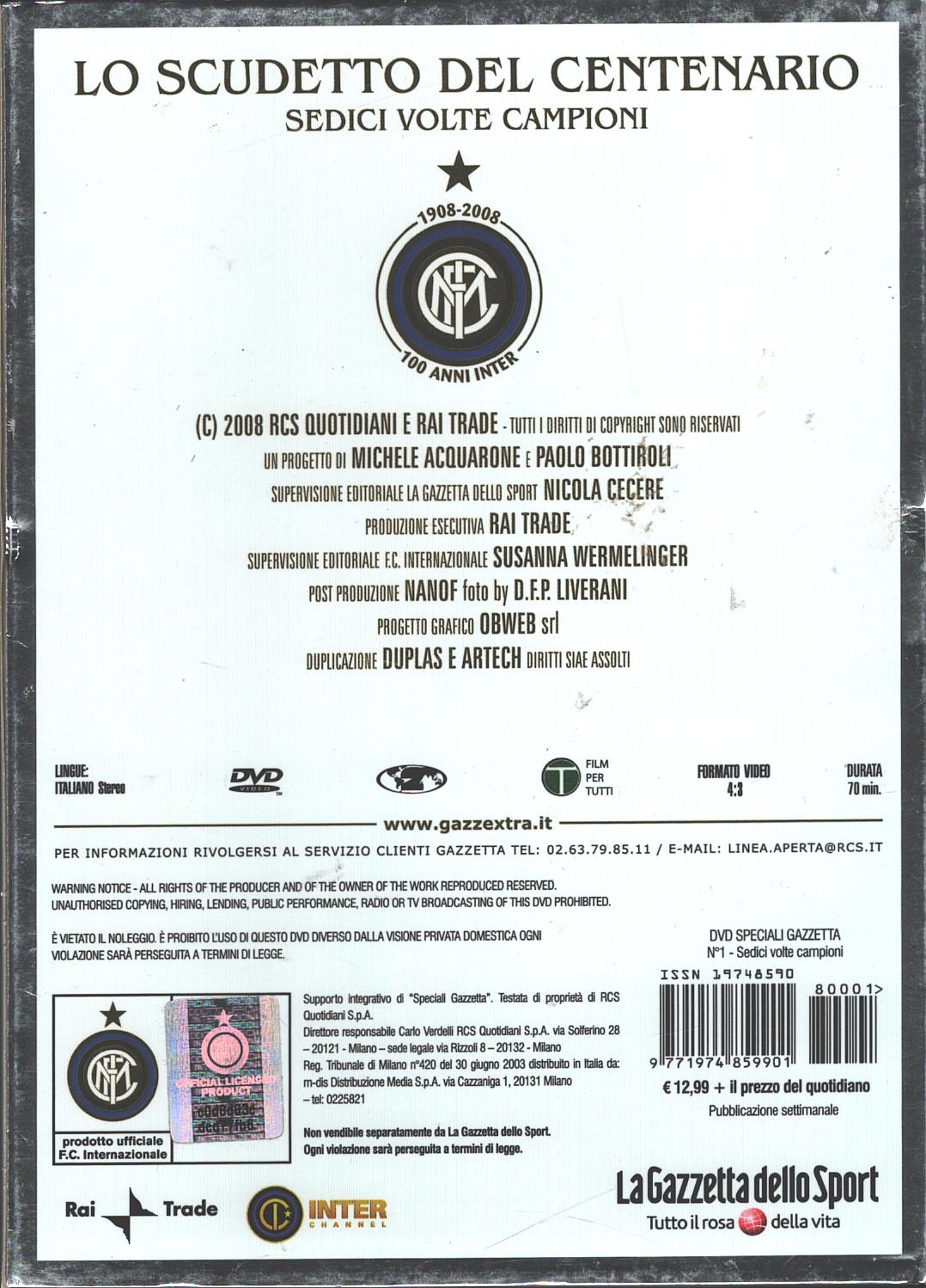 F.C. Internazionale – Inter. 2007-2008 Lo Scudetto del Centenario (3 DVD) con Slipcase. Versione da edicola. DVD in Italiano