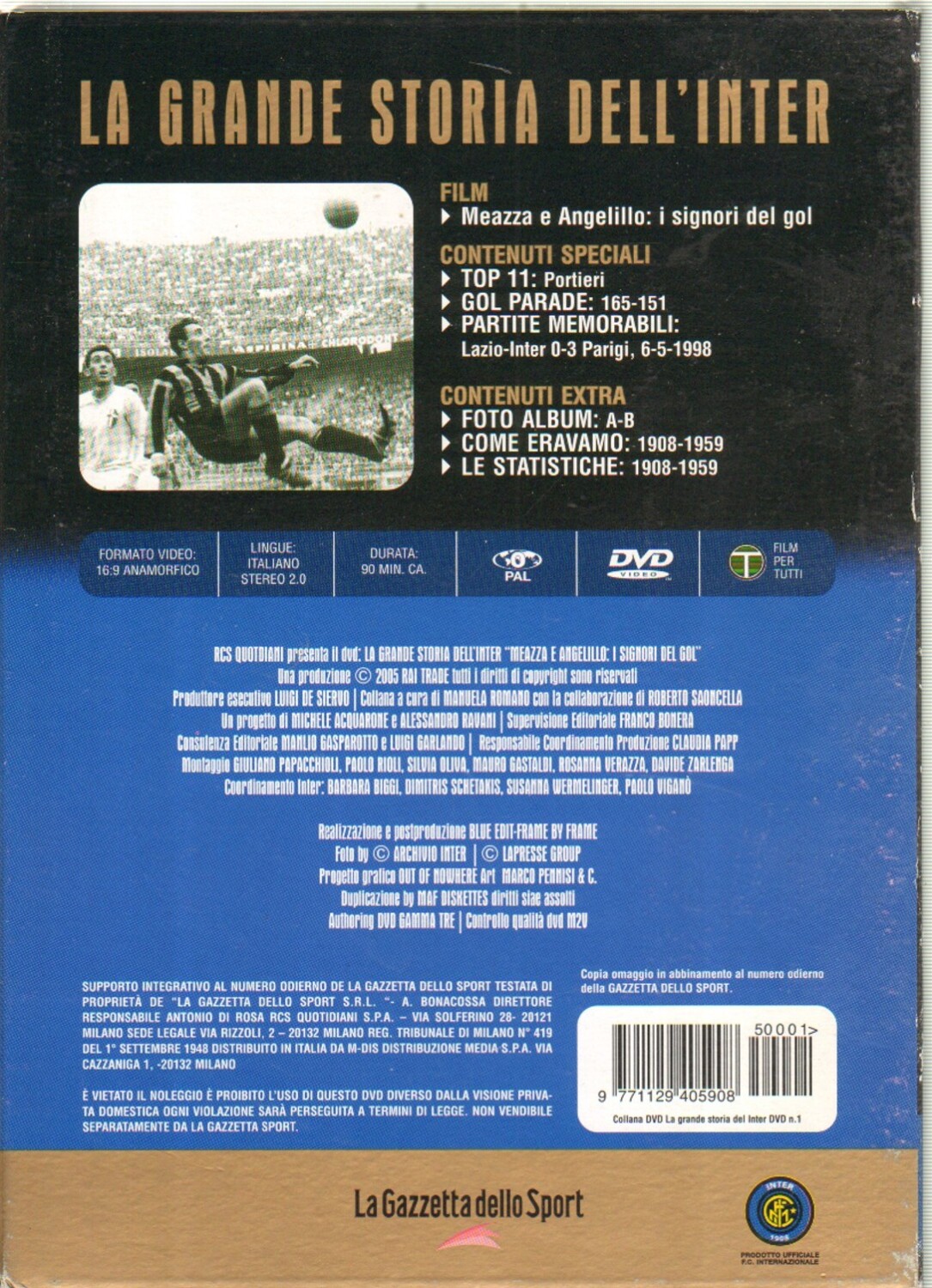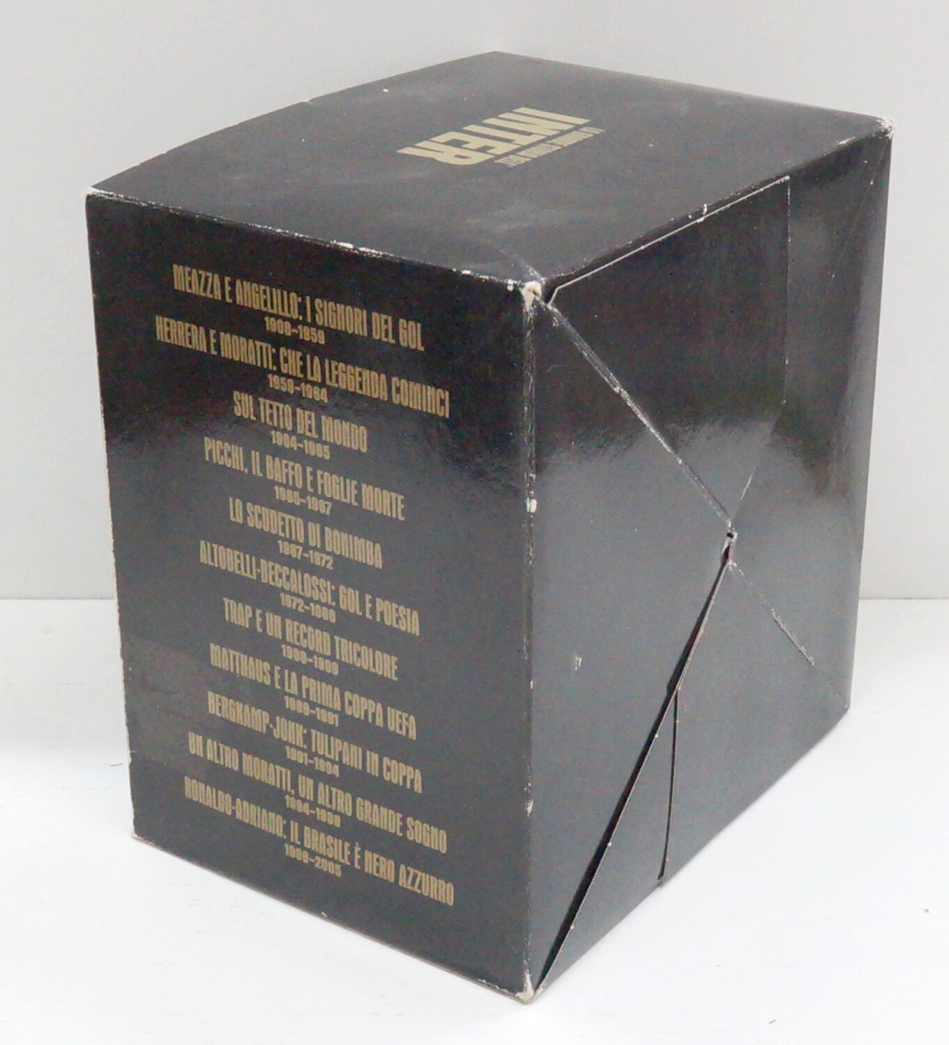 | Sono inclusi i seguenti titoli: Meazza e angelillo: i signori del gol. 1908-1959; Herrera e Moratti: che la leggenda cominci. 1959-1964; Sul tetto del Mondo. 1964-1965; Picchi, il baffo e Foglie morte. 1965-1967; Lo scudetto di Bonimba. 1967-1972; Altobelli-Beccalossi: gol e poesia. 1972-1988; Trap e un record tricolore. 1988-1989; Matthaus e la prima coppa UEFA. 1989-1991; Bergkamp-Jonk: tulipani in coppa. 1991-1994; Un altro Moratti, un altro grande sogno. 1994-1998; Ronaldo-Adriano: il Brasile e’ Nero Azzurro. 1998-2005 | |